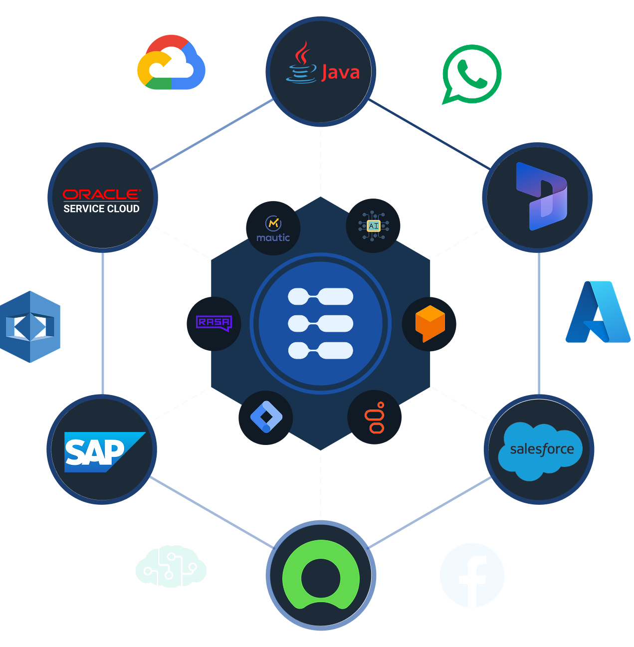 We offer a wide range of connectors and integration options for your contact center such as CRM CTI integrations, Chat and Social Media channels, AI Components for automated speech recognition, translation, biometric authentication and many other purposes, CMS / knowledge base search integrations, chat and video integrations for websites and mobile apps, and much more.