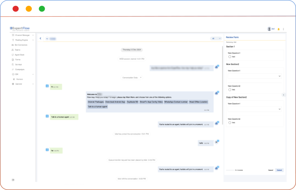 Access full conversation content, including both conversation activities and conversation data in a single, structured interface. The Conversation View component enables Quality Managers and Evaluators to review assigned interactions, complete evaluations using linked forms, and monitor agent performance with context-rich data.