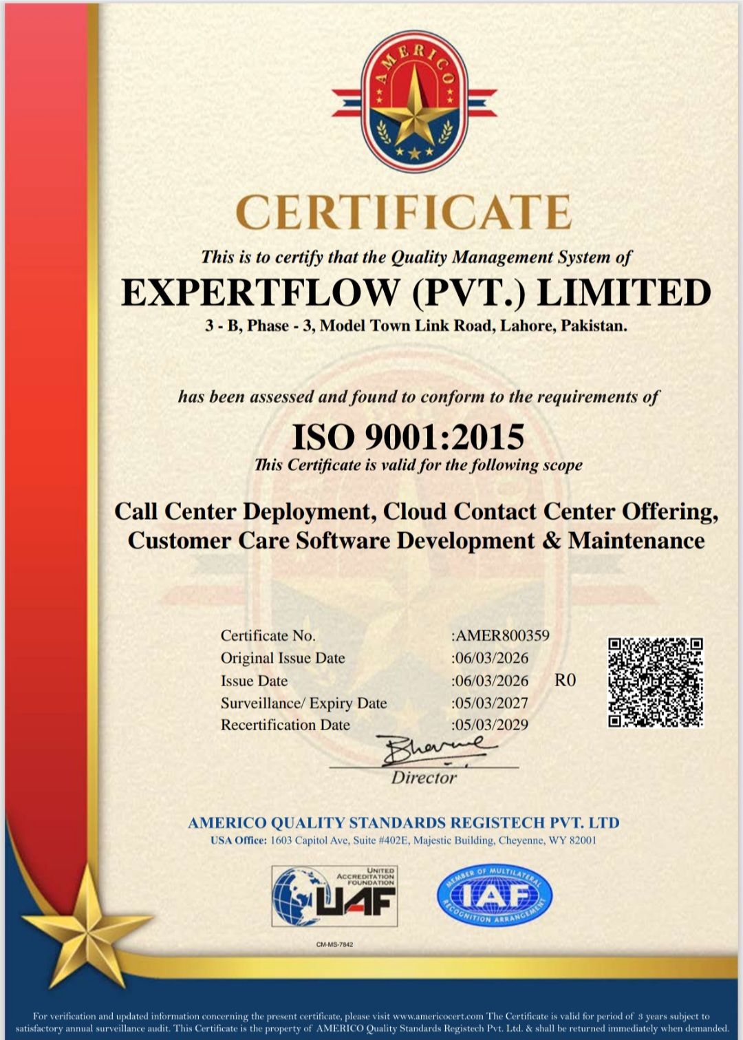 For us, customer satisfaction and security of information are the key performance indicators, requiring that the IT services of ExpertFlow must meet and exceed clients’ requirements and our quality performance must improve continually to ensure sustainable environmental development.
